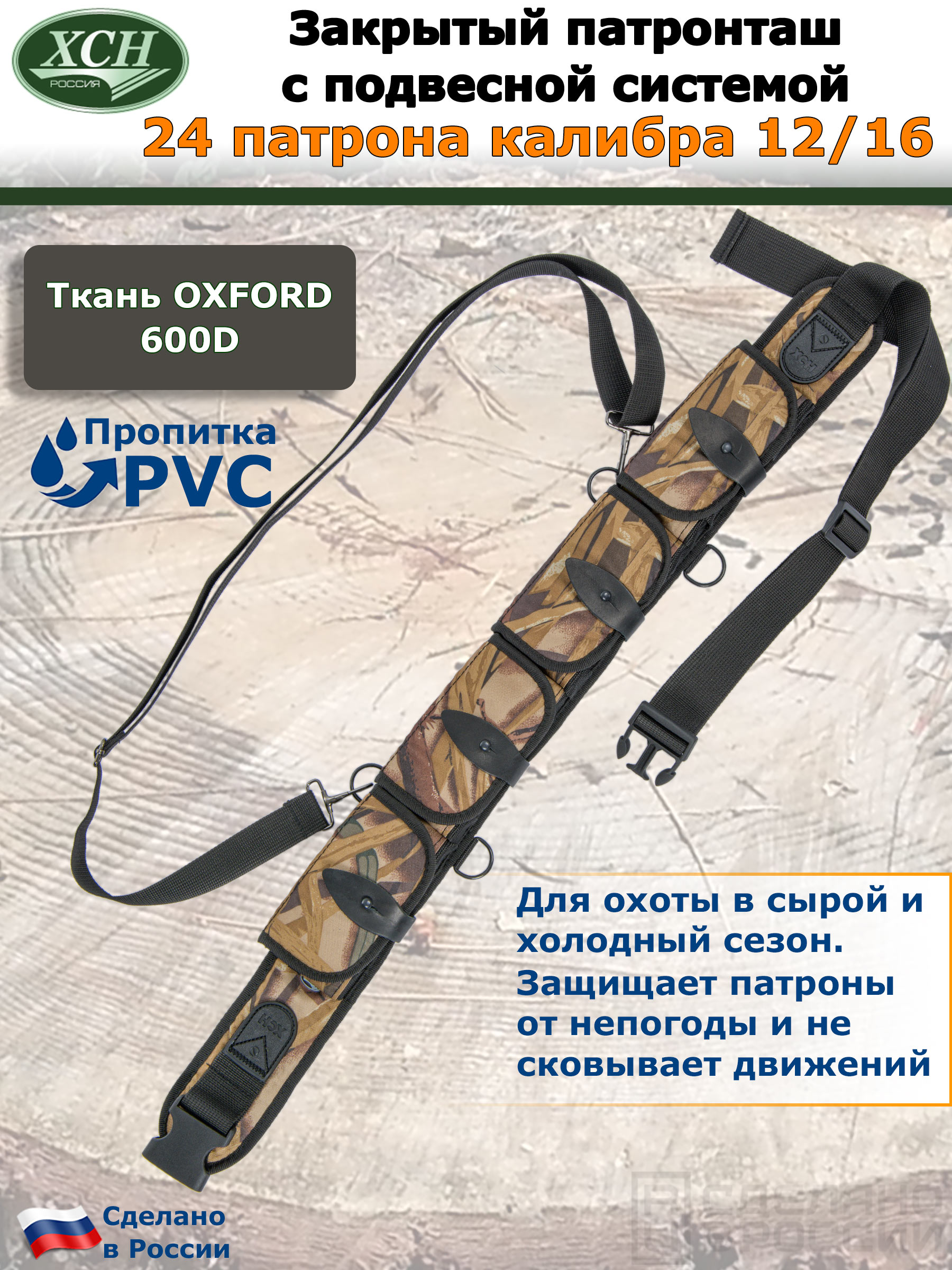 Закрытый патронташ в расцветке «Камыш» на 24 патрона К12/16 с подвесной системой