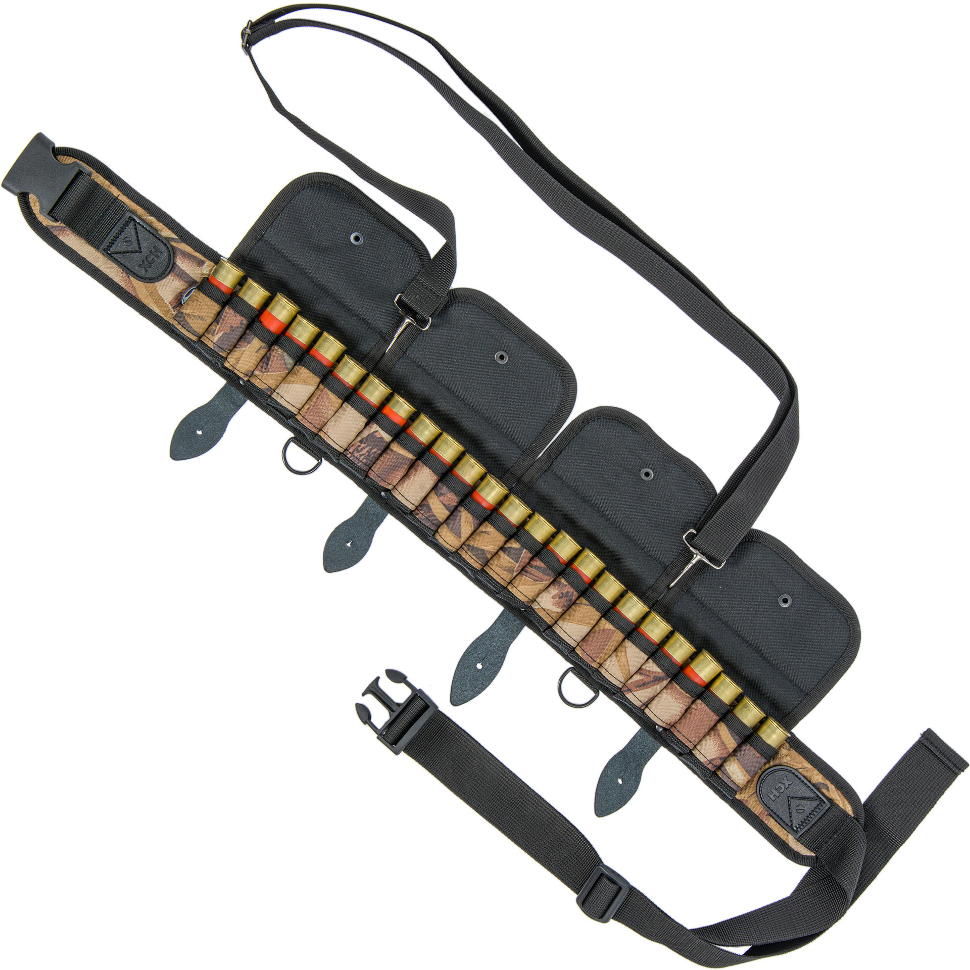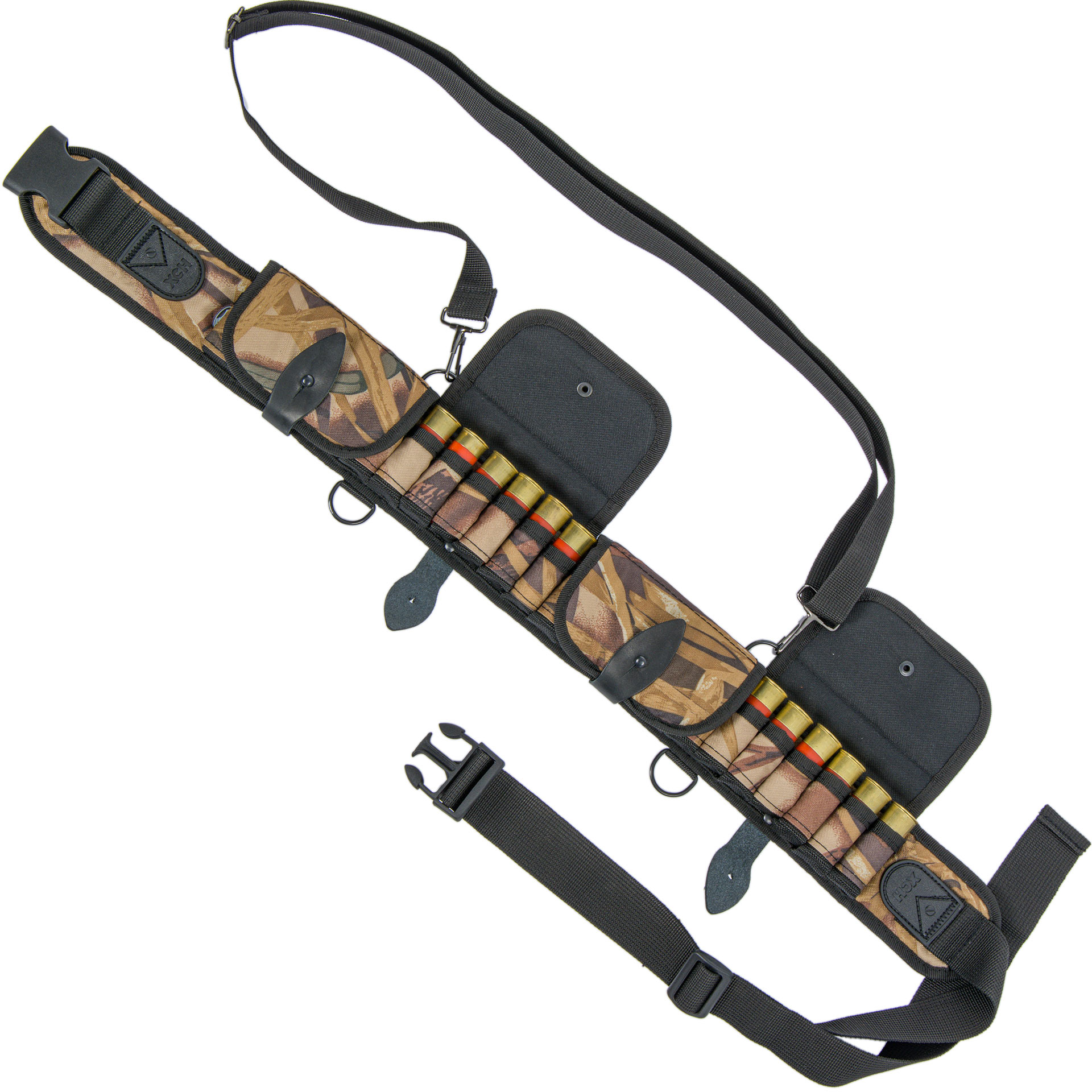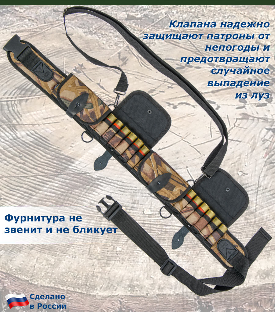 Закрытый тканевый патронташ в расцветке «Камыш» на 24 патрона 12/16 калибра с подвесной системой