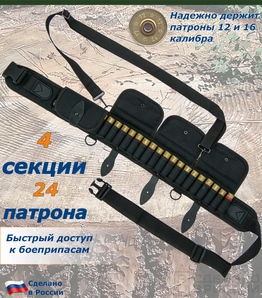 Закрытый патронташ из черной ткани на 24 патрона 12 калибра