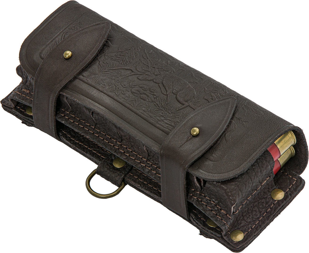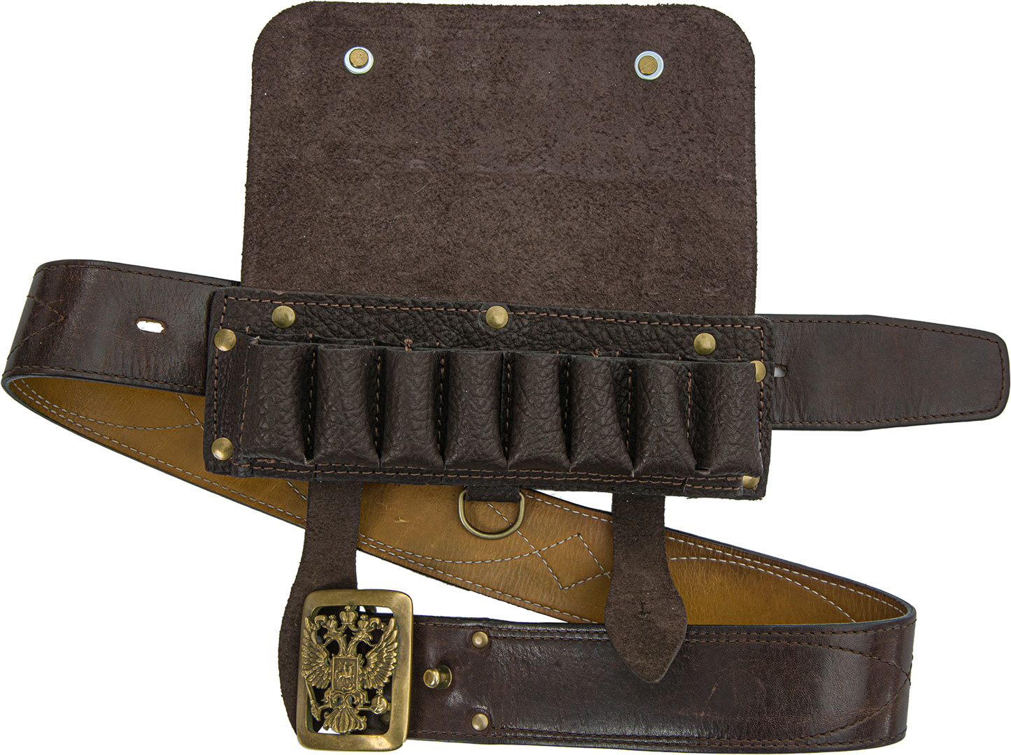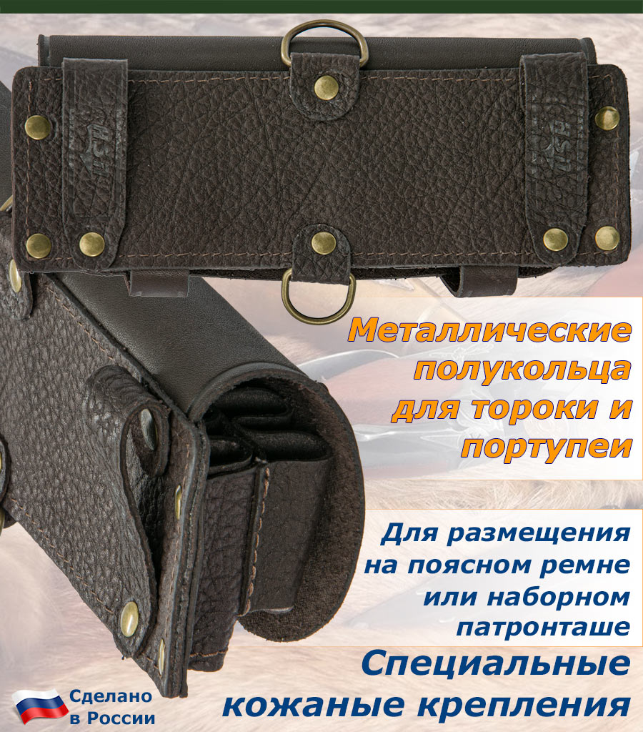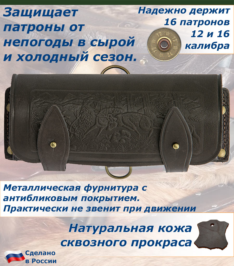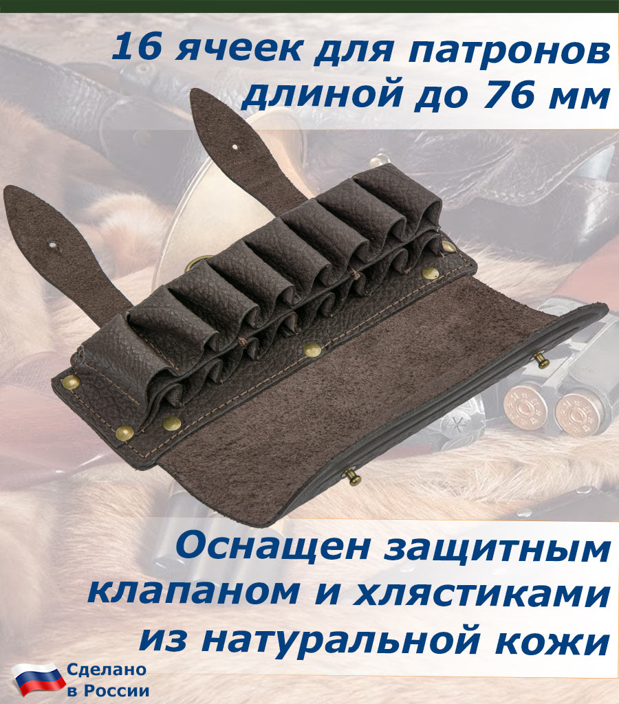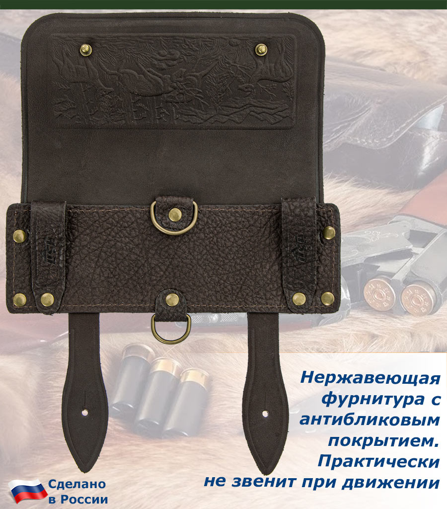 Оснащен клапаном и хлястиками из натуральной кожи, для защиты патронов от попадания дождя и снега, сохраняя их в рабочем состоянии.