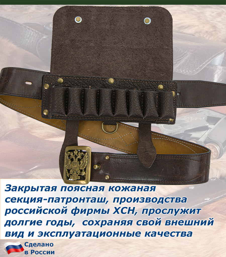 Закрытый поясной патронташ-секция, производства российской фирмы ХСН, прослужит долгие годы, сохраняя свои качества и привлекательный внешний вид.