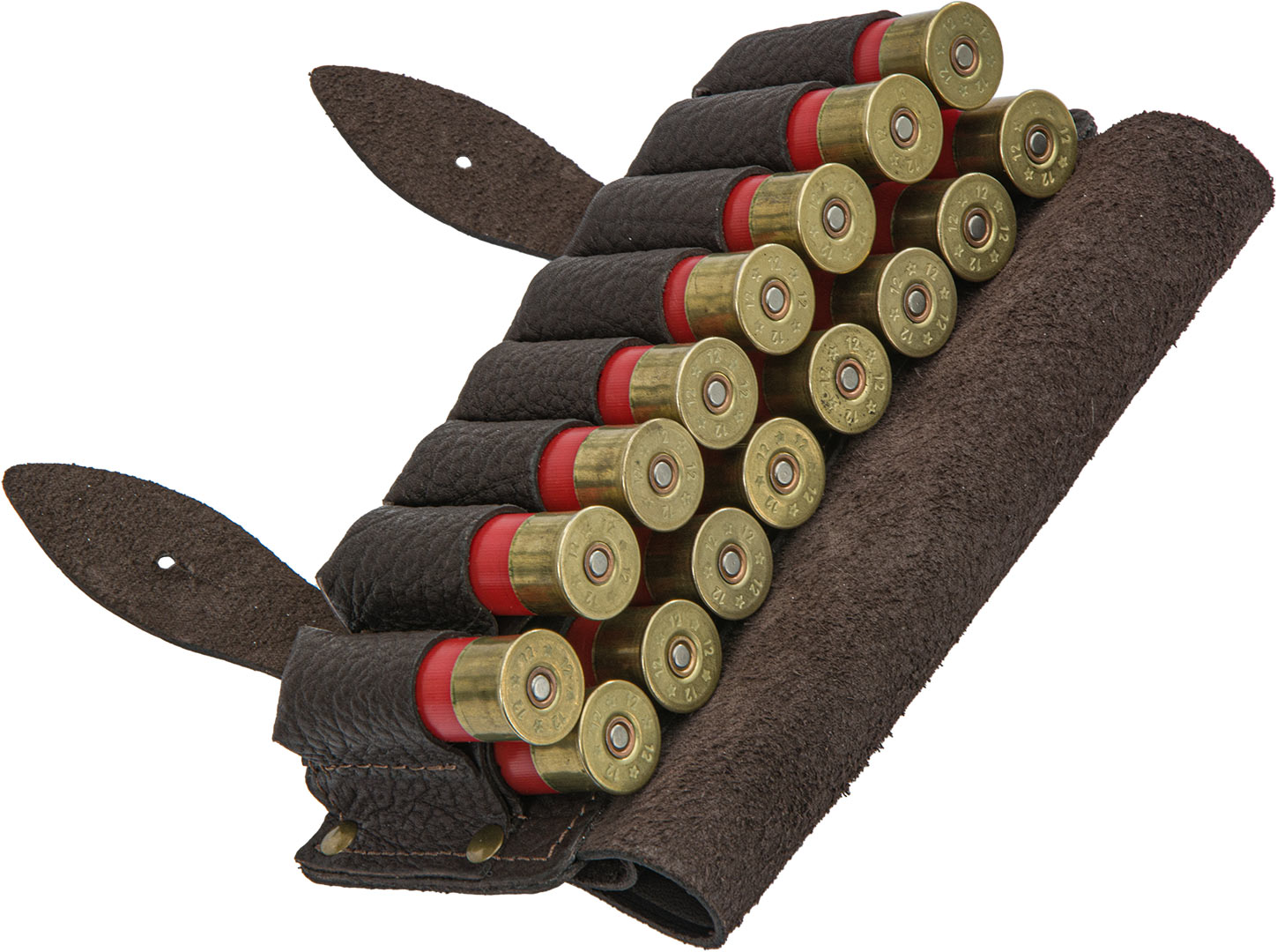 Патронташ секция изготовлен полностью из натуральной кожи, что обеспечивает долговечность, прекрасный внешний вид и прочность изделия. Рассчитан на 16 патронов калибра 16 и калибра 12.