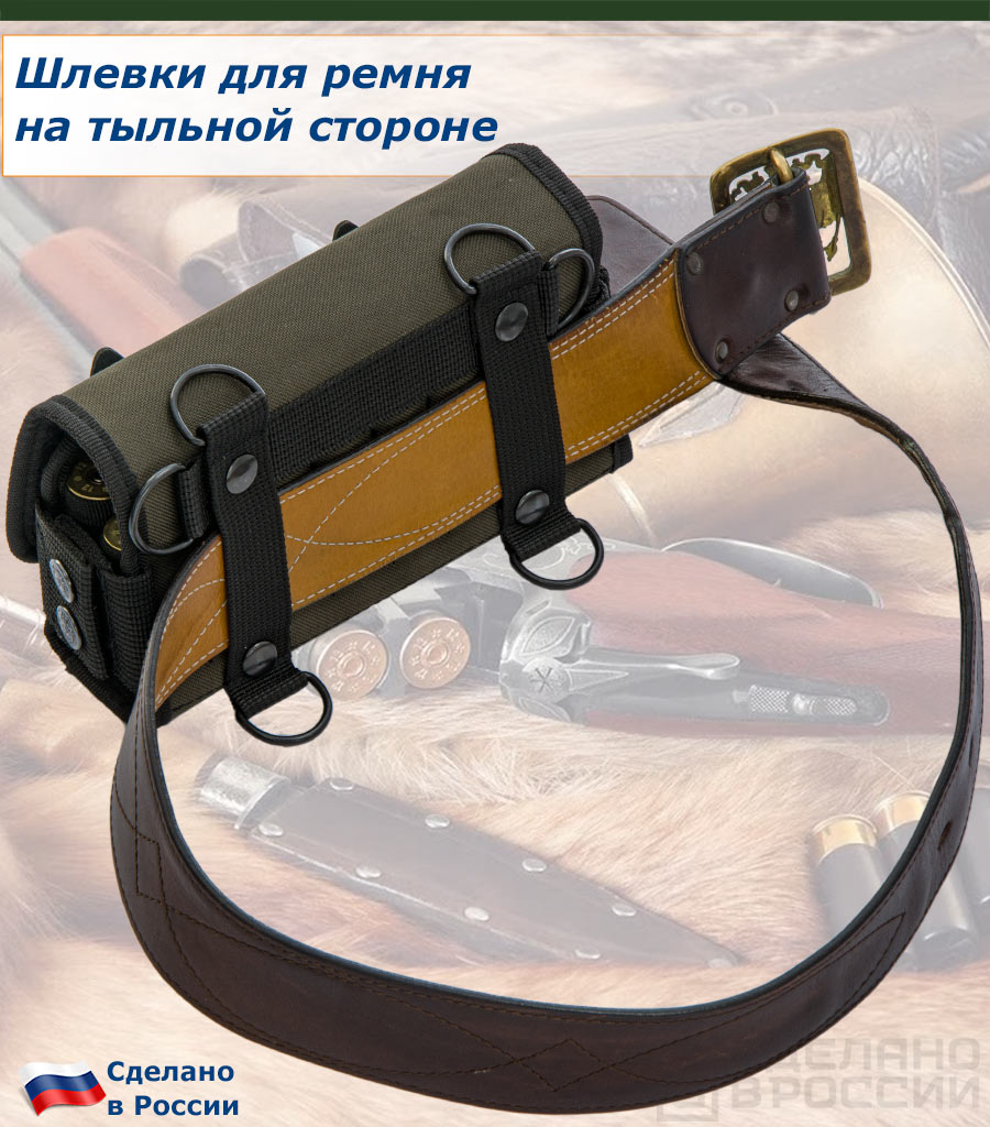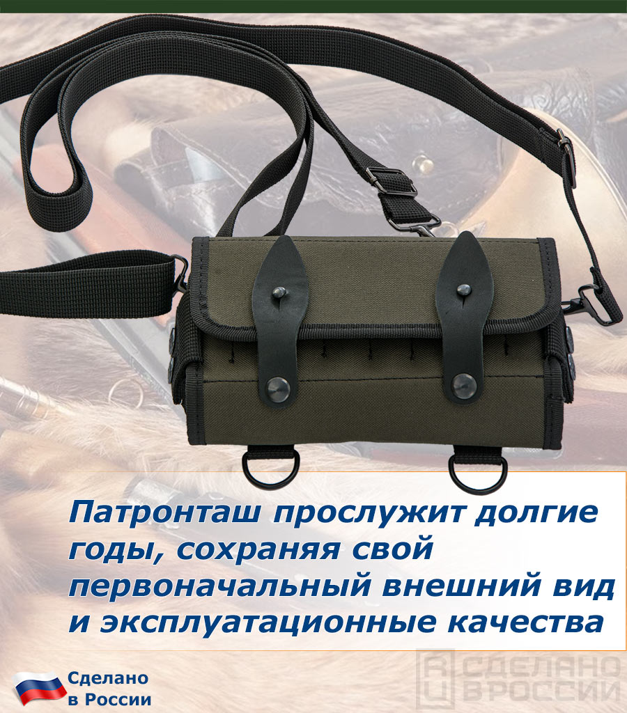 Для защиты от попадания дождя и снега, патронташ оснащен клапаном, застегивающийся износостойкими хлястиками из натуральной кожи.
